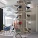 The showroom was thoughtfully designed by Lunar Studio, with designers Luo Jiao and Fan Jingxiao taking full advantage of the original open space with only one row of columns. Their creative use of the structure includes a suspended mezzanine, which allows for multiple floor heights and unique spatial configurations. This design feature enhances the presentation of contemporary furniture and Silent Gliss’s premium curtain and blind systems.